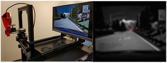 The monitor aspect ratio can be different than that of the camera sensor, therefore the maximum distance between the camera and monitor was calculated to ensure that only the displayed image fills the camera field of view. In the next step, the TO is calibrated using a camera manufacturer software-generated road image (Figure 2, right).