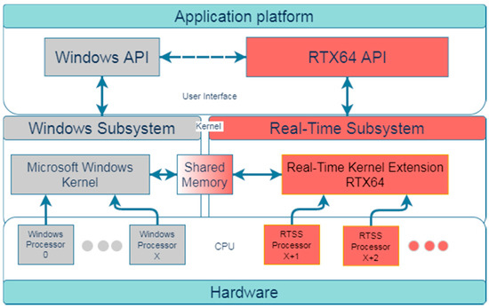 - Interval Zero, Real-Time Operating System (RTOS) RTX on Windows Diagram. Available online: https://help.intervalzero.com/product_help/RTX64_4/Content/PROJECTS/Subsystem/RTSS_Architecture/Adding_RTX_To_Win_Environment.htm (accessed on 20 October 2021).