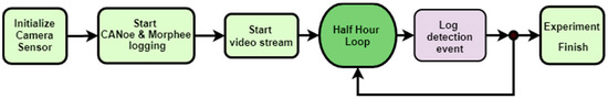 Detection data flow is depicted in Figure 7. CANoe data are triggered by the Morphee environment and this trigger time is the first information saved by the experiment. It is worth stressing that Mobileye sign detection functionality [22] does not send cycling messages with detected sign information. Sign detection is event-based, therefore it is only when the sensor detects a sign that it sends a CAN frame with all the information about it. The message includes information about sign position relative to the car, the sign classification and if it contains some supplementary signs.