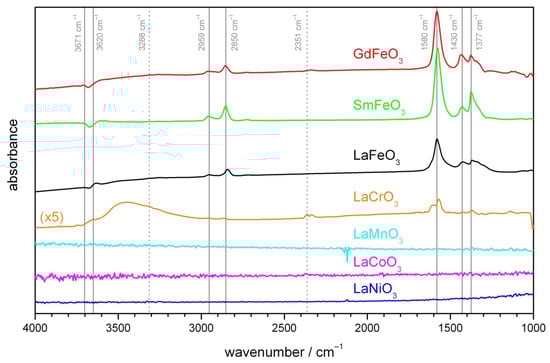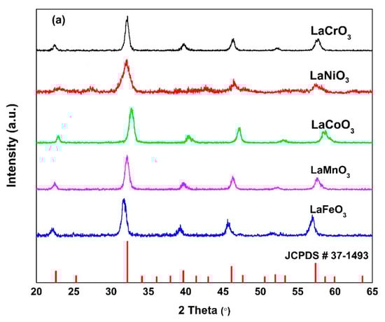 | LaCoO3 | La(NO3)3 · 6H2O (Fluka, (Buchs, Switzerland), Puriss. p.a., ≥99.0%) and Co(NO3)2 · 6H2O (Sigma, (Buchs, Switzerland), Puriss. p.a., ≥99.0%) |
