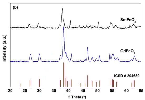 | SmFeO3 | Sm(NO3)3 · 6H2O (Acros Organics, (Geel, Belgium), ≥99.9%) and Fe(NO3)3 · 9H2O (Sigma Aldrich, (Buchs, Switzerland), ≥99.0%) |
