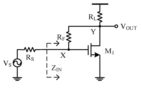 Neglecting the effect of parasitic capacitance of the input transistor M1 and assuming , the input impedance of the shunt-feedback amplifier could be derived as