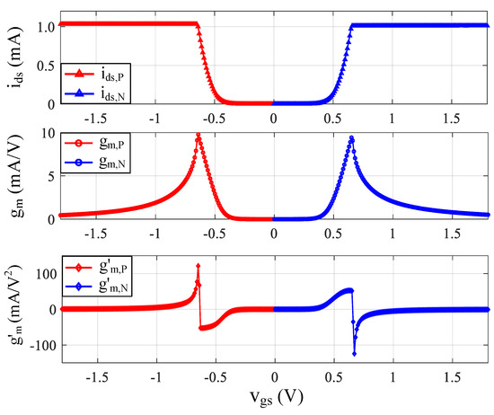 where , , and are the first-order and the second-order derivatives of the transconductances and with respect to the gate-to-source voltage , respectively.