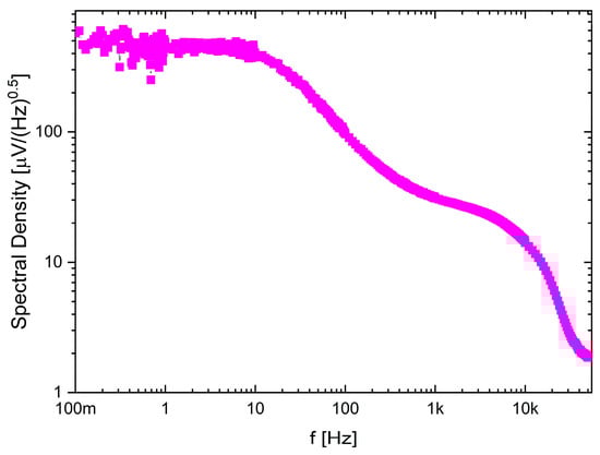 The recording channel noise measurements (see Figure 12) show how the noise characteristic may be shaped by the frequency bandwidth selection. Here, the LCF was set to approximately 10 Hz, while the UCF to 4.7 kHz and it can be seen that the 1/f noise is mitigated below LCF.
