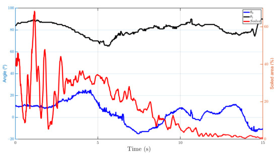 Joint variables and percentage of soiled area cleaned over time by the cleaning tool.