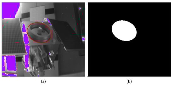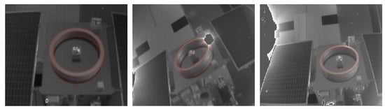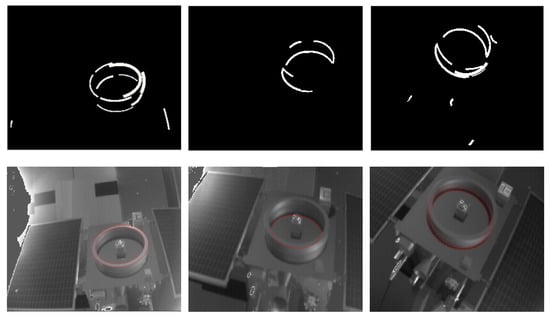Feature-based methods are most commonly used in the process of acquisition [,,]. Natural features on uncooperative targets are detected by sensors and the corresponding pose can be obtained by matching them with a benchmark such as a model [,]. Natural circle features such as docking ring and nozzle are common attributes of most spacecraft and are more stable compared with point and line features and are used as a reference feature in many missions [,,]. In this paper, the pose estimation does not need the whole model or specific local model and the unique condition is the presence of circle features on the spacecraft. However, even considering the blurring problems [], there are still shadows, overexposure and other problems in actual scenes and circle feature detection is often affected by the lighting conditions, the geometry of the circle feature and the shooting perspective, resulting in poor circle detection results of the images. Some scholars have given solutions from different views for the problems in different scenes [,,].