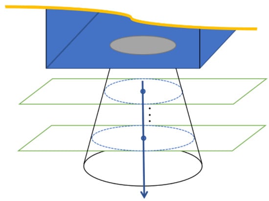 For the side curved surface, the normal vector of the target circle feature is its axis. To adapt to more rotating body structures, the method of geometric cross-section fitting is adopted, using several planes parallel to the end face to intercept the side surface, and the obtained intercepting circle is fitted to the center. The axis is the straight line where the center of the circle is located (as shown in Figure 10).
