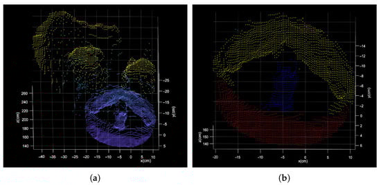 For the segmentation of the point clouds, some specialized segmentation algorithms are studied from the complete model [,]. However, the point cloud data at a certain moment (in the acquisition process) is the result of a certain angle of view of the target spacecraft. Due to the structure occlusion, the point cloud will be incomplete, and the circle feature may also be incomplete, which will make circle feature segmentation more difficult than simple geometric features. Moreover, the circle feature is local, and the direct segmentation (or direct alignment) of the point cloud will result in a large scale of point cloud segmentation and low calculation efficiency [] (as shown in Figure 2).