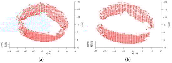 The points containing the same label are extracted to form a new point cloud , containing points. Then, we have , . The new point clouds are sorted by descending order according to the number, and the number difference of adjacent point clouds is calculated. When the number difference exceeds the threshold , all the point clouds before this point cloud are considered as the point cloud of the final circle feature .