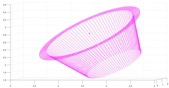 Assume that the circle feature parameters are the center of the circle , and the unit normal vector . These parameters are measured by the ToF camera in the CRF. Since the TBF is established on the circle feature, the displacement of the uncooperative target relative to the service spacecraft is the coordinate of the center of the circle in the CRF that is .