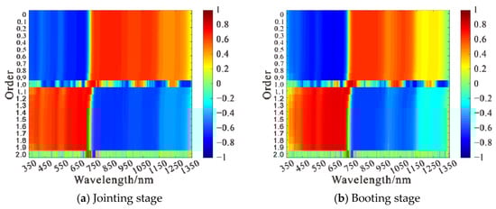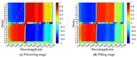3.1.1. Correlation Analysis of Raw Spectra and Fractional Order Differential Spectra with Wheat LAI