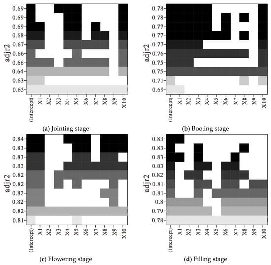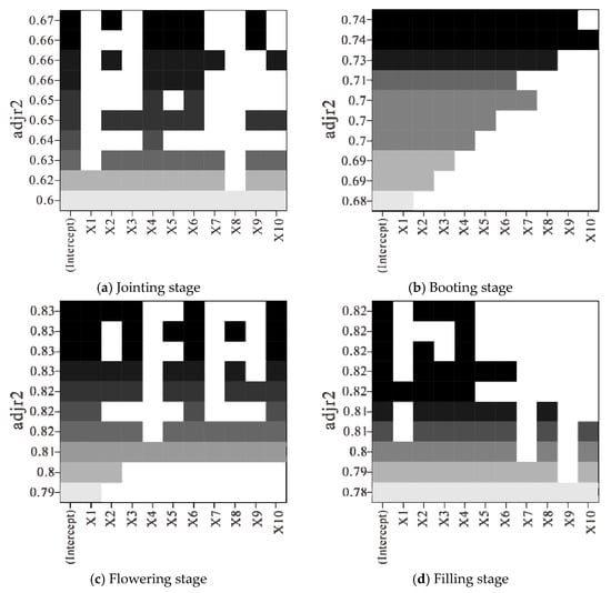 3.1.2. Construction of LAI Estimation Model Based on Optimal Subset Regression