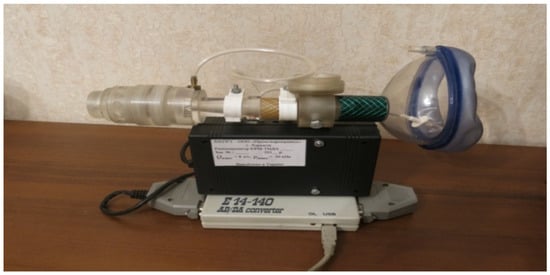 The device presented in Figure 2 includes a measuring unit containing pressure and air flow sensors, the signals from which are transmitted to the conversion unit, in which the output signals of the sensors are digitized using an ADC and transmitted through the interface module to the PC. The control microcontroller generates the necessary strobe pulses according to the selected mode. High-level signal processing, visualization, analysis and logging of examination results are performed on a PC using software.