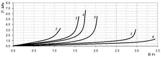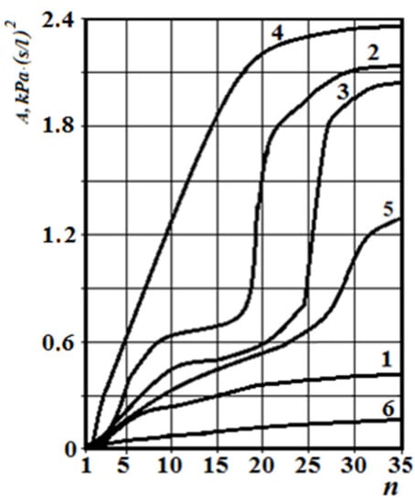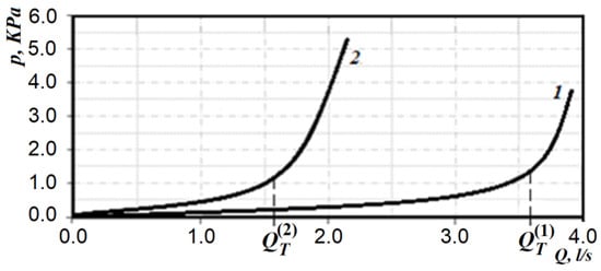 where Qmax—maximum air flow, QT—threshold value of air flow during the transition to the quadratic flow regime.