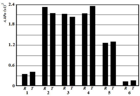 The range of values kT, which is determined by the Formula (5), can be divided into sub-bands that characterize the low, medium and high energy efficiency of forced nasal breathing. This indicator is based on data from our own research—statistical processing of nasal breathing test results in 245 patients (see Table 1). At the same time, the indicators of maximum pressure drops and air flow during forced breathing and fatigue and endurance of patients during respiratory tests were taken into account.