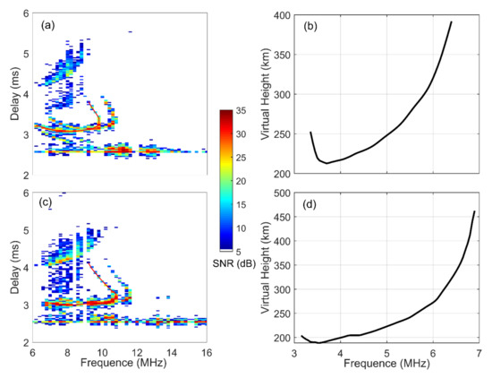 - Chen, G.; Zhao, Z.; Zhang, Y.; Yang, G.; Zhou, C.; Huang, S.; Li, T.; Li, N.; Sun, H. Application of the oblique ionogram as vertical ionogram. Sci. China Ser. E Technol. Sci. 2012, 55, 1240–1244. [Google Scholar] [CrossRef]