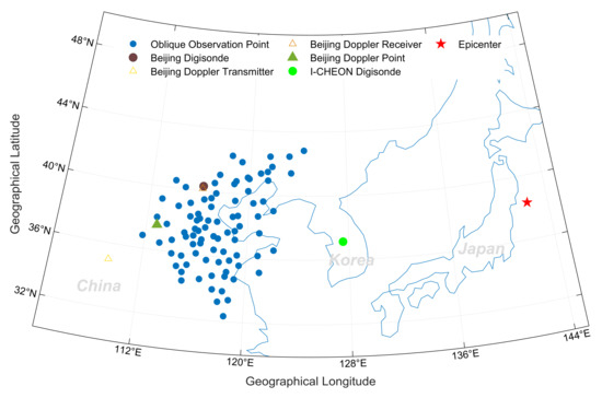- Liu, J.Y.; Sun, Y.-Y. Seismo-traveling ionospheric disturbances of ionograms observed during the 2011 M w 9.0 Tohoku Earthquake. Earth Planets Space 2011, 63, 897–902. [Google Scholar] [CrossRef]