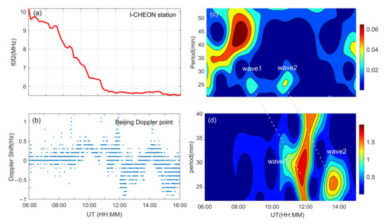 - Maruyama, T.; Tsugawa, T.; Kato, H.; Ishii, M.; Nishioka, M. Rayleigh wave signature in ionograms induced by strong earthquakes. J. Geophys. Res. Space Phys. 2012, 117, 08306. [Google Scholar] [CrossRef]
