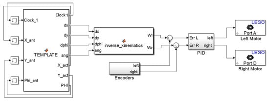 - Montés, N.; Rosillo, N.; Mora, M.C.; Hilario, L. Real-Time Matlab-Simulink-Lego EV3 Framework for Teaching Robotics Subjects. In Robotics in Education. RiE 2018. Advances in Intelligent Systems and Computing; Lepuschitz, W., Merdan, M., Koppensteiner, G., Balogh, R., Obdržálek, D., Eds.; Springer: Cham, Swittherland, 2019; Volume 829, pp. 230–240. [Google Scholar]