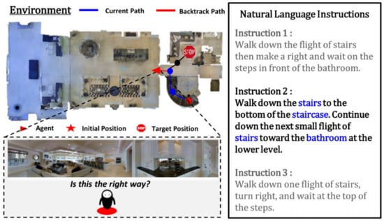 - Ke, L.; Li, X.; Bisk, Y.; Holtzman, A.; Gan, Z.; Liu, J.; Gao, J.; Choi, Y.; Srinvasa, S. Tactical rewind: Self-correction via backtracking in vision-and-language navigation. In Proceedings of the IEEE Conference Computer Vision Patt. Recogn. (CVPR), Long Beach, CA, USA, 16–20 June 2019. [Google Scholar]