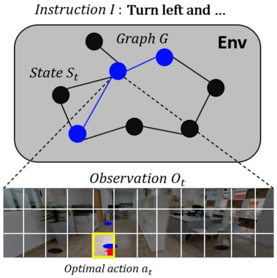 - Anderson, P.; Wu, Q.; Teney, D.; Bruce, J.; Johnson, M.; Sünderhauf, N.; Reid, I.; Gould, S.; van den Hengel, A. Vision-and-language navigation: Interpreting visually grounded navigation instructions in real environments. In Proceedings of the IEEE Conference Computer Vision Patt. Recogn. (CVPR), Salt Lake City, UT, USA, 18–22 June 2018; Volume 2. [Google Scholar]