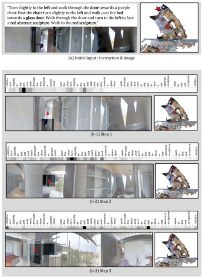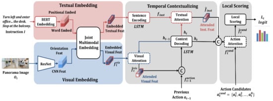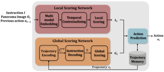 - Ma, C.; Lu, J.; Wu, Z.; AlRegib, G.; Kira, Z.; Socher, R.; Xiong, C. Self-monitoring navigation agent via auxiliary progress estimation. In Proceedings of the International Conference Learning Representation. (ICLR), New Orleans, LA, USA, 6–9 May 2019. [Google Scholar]