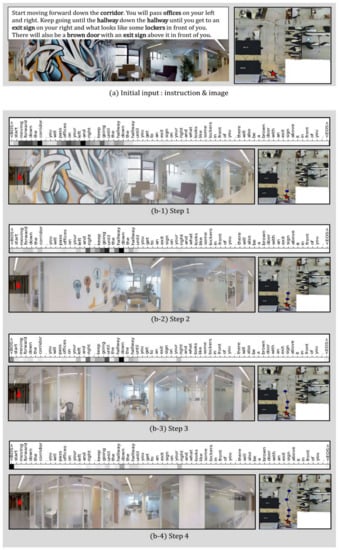 - Jain, V.; Magalhaes, G.; Ku, A.; Vaswani, A.; Ie, E.; Baldridge, J. Stay on the Path: Instruction Fidelity in Vision-and-Language Navigation. In Proceedings of the 57th Annual Meeting of the Association for Computational Linguistics, Florence, Italy, 28 July–2 August 2019; pp. 3674–3683. [Google Scholar]