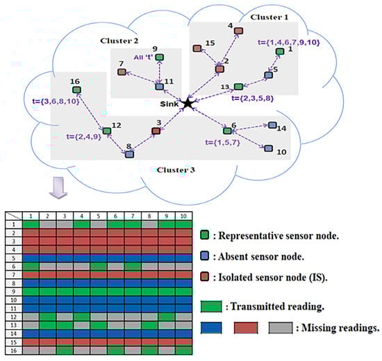 Figure 12 highlight the effect of the introduced block on the recovery of, respectively, the representative nodes’ and the inactive nodes’ readings. Although both of the techniques apply the same MC resolution method, the