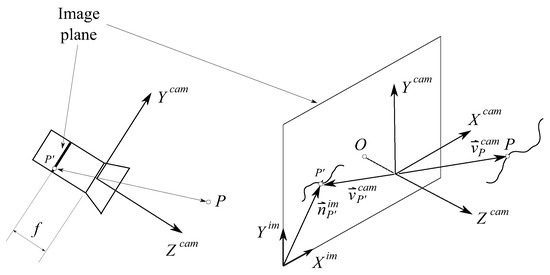 Figure 5 shows the location of the camera in the TGMS and the relation between the position vector of the arbitrary point P in the camera frame and its position vector in the TGMS frame.