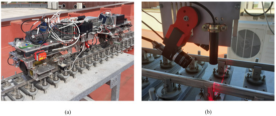 - The calculation of the relative track irregularities ( and ), as shown in Equation (24), needs as an input the output of the computer vision and the roll angle of the TGMS with respect to the track .
