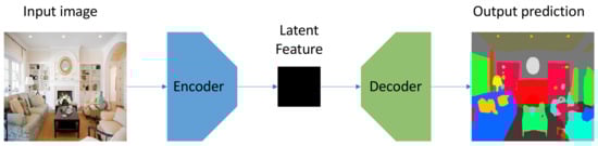 Deep learning techniques based on CNNs, which can naturally integrate the feature extraction and classification into an end-to-end manner, have made a vast contribution to semantic segmentation and obtained the state-of-the-art performance on benchmark datasets. Among the various CNN architectures, the encoder–decoder structure is widely used and can usually obtain excellent performance [12,13,14]. Figure 1 demonstrates the architecture of a simple encoder–decoder model. As the name suggests, the network consists of an encoder and a decoder. The former maps a high dimensional input (usually an image) to a lower dimensional feature space, while the latter can capture sharper boundaries of objects in the scene by gradually recovering the latent spatial information. Nevertheless, this traditional single branch architecture cannot process the multi-input (such as RGB and depth map) separately, making it difficult to extract a variety of context information. Adding extra branches to process multi-input is an intuitive idea to solve this problem [15,16]. However, there is still no experiment that investigates the performance on different combinations of branches that have different network architectures, let alone any general design that can flexibly combine different networks into an integral multi-branch architectures.