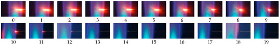 For the flame monitoring of industrial combustors working under high pressure, high temperature, and drastic vibration, intrusive flame sensors, such as thermocouples and pressure transducers, are widely used. K-type thermocouples, which are broadly used in ground and aviation gas turbines, are mounted at the turbine exit to monitor the exhaust gas temperature, from which the flame state could be inferred. High frequency dynamic pressure transducers are installed on the afterburners of some turbojet engines, for detecting flame ignition. Intrusive sensors are also often used in lab-scaled experiments. For instance, Gardiner examined the potential of using exhaust gas temperature thermocouples combined with an electronic signal processing method for alarming flame-out. Results from a GE J-85 combustor verified that the proposed thermocouple flame sensor could identify flame-outs and the response time was less than 100 ms [20]. Rolando et al. detected soot and nanoparticles in a diffusion ethylene flame by transient-thermocouple-based measurements. Their results demonstrated that the method was potent in detecting the particulate volume fraction [21]. Muruganandam et al. used a microphone to analyze the acoustic emission in a premixed swirl-stabilized combustor and observed the short duration, localized extinguishing, and re-ignition events as the flame approached blowout [22]. Nair and Lieuwen observed that low-frequency spectrum and intermittent fluctuation of the acoustic signal could be the precursor of a lean premixed flame in combustors with pilot, swirl, and bluff-body stabilizers, and proposed the acoustic method to monitor the precursor of LBO [23,24].