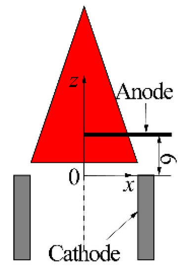 Thus, according to Equations (8) and (9), , and can be neglected; it means that the electrical resistance in the flames is mainly concentrated in the vicinity of the cathode.