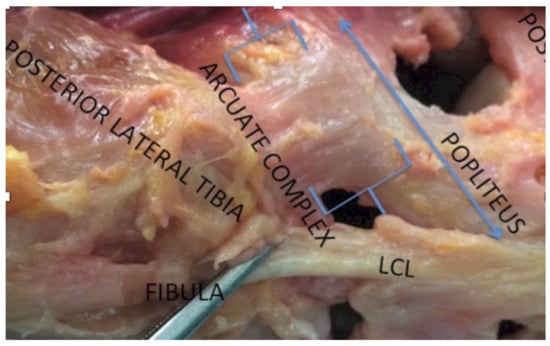 - Arcuate release: Located in the posterolateral corner, the medial limb of the arcuate complex curves over the popliteus muscle to join with the oblique popliteal ligament, while the lateral limb ascends to blend with the capsule near the lateral gastrocnemius muscle (Figure 1). Both limbs of the arcuate complex were incised at the joint line with the knee in extension using curved scissors.