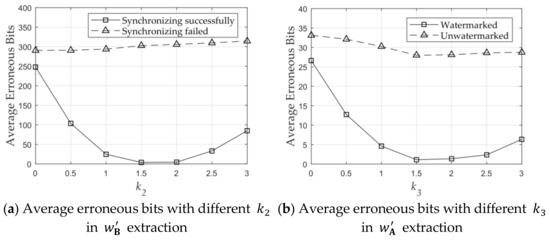 where is the set threshold, and are the mean value and the standard deviation of all the magnitudes in the range of and is a fixed value. Finally, an extracted watermark message is obtained by BCH decoding. To avoid a false positive, watermark detection is successful only when two of are the same. The same decoded message will be used as extraction result.