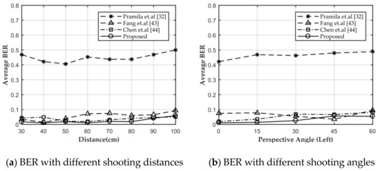 The screen-cam process causes severe image quality degradation [45]. In other words, we need to improve the robustness of the watermarking algorithm to deal with a screen-cam attack. A robust watermarking algorithm has three mutually restrictive characteristics [70]: robustness, imperceptibility, and watermark capacity. Under these circumstances, commonly, we need to sacrifice some watermark capacity or imperceptibility to meet the screen-cam robust requirements. For example, the length of message sequences in [43,44,65] were only 63, 60, and 94 bits, which are less than normal. Besides, these methods all embedded the message repeatedly to deal with the loss of detailed information during screen-cam process.