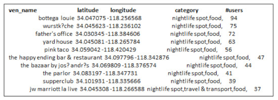 10. Li, N.; Chen, G. Analysis of a location-based social network. In Proceedings of the 2009 International Conference on Computational Science and Engineering, Vancouver, BC, Canada, 29–31 August 2009; Volume 4, pp. 263–270. [Google Scholar]