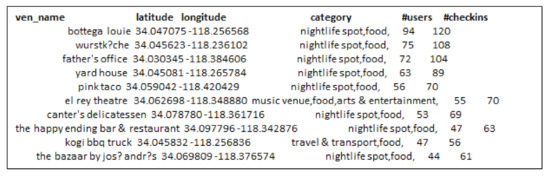 25. Wang, W.; Yin, H.; Chen, L.; Sun, Y.; Sadiq, S.; Zhou, X. Geo-SAGE: A geographical sparse additive generative model for spatial item recommendation. In Proceedings of the 21th ACM SIGKDD International Conference on Knowledge Discovery and Data Mining; ACM: New York, NY, USA, 2015; pp. 1255–1264. [Google Scholar]