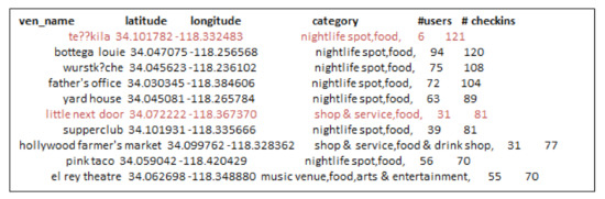 9. Gao, H.; Liu, H. Data analysis on location-based social networks. In Mobile Social Networking; Springer: Berlin/Heidelberg, Germany, 2014; pp. 165–194. [Google Scholar]