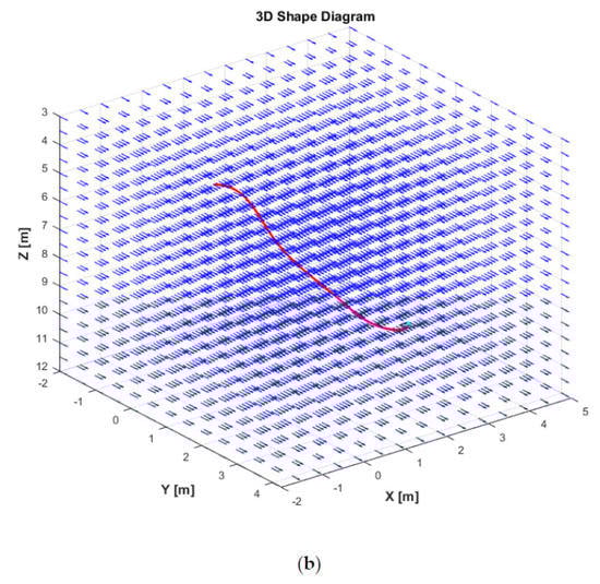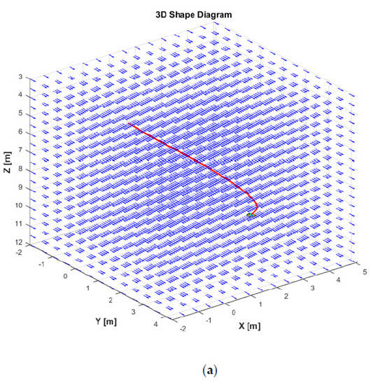 In this simulation, we assume that the model parameters are disturbed from their actual values by 30%. Meanwhile, the irrotational ocean current model effects on the AUV are generated by the first-order Gauss–Markov processes, and the variation of its parameters , , and are defined as the same as in Section 5.1.