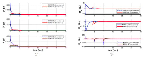 Control inputs of controller in both cases: (a) forces; (b) moments.