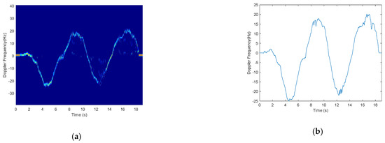 Doppler frequency extraction. (a) Frequency-time spectrum; (b) Doppler frequency.