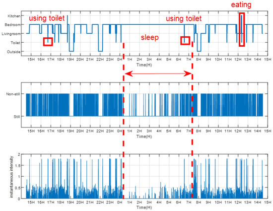 Elderly people who live alone can develop poor health, they may have an accident at home and have no way of alerting someone that they need help [6]. Thus, a continuous long-term daily monitoring system is critical and imminently needed for elderly health care. Specifically, daily life routine and abnormality detection are key for good elderly health care. Besides, regular daily physical activity is one of the most important things people can do to improve their health, and such daily physical activity can decrease the risk of chronic diseases [7]. According to the energy consumed as people perform certain activities, daily activities can be divided into different levels [8,9]. Activity levels may remain relative stable over weeks or months, an early and accurate awareness of decreasing activity levels can act as a warning sign to trigger early intervention [10]. High-level semantics such as the area staying rate of the target, the motion state of the target and long-term physical activity intensity levels are important health-related information. Moreover, if we can continuously and non-intrusively capture these health-related daily life information of elders over the scale of weeks and months, then that would provide a valuable long-term monitoring system for health care.