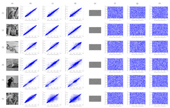- The generation method of the measurement matrix for compression encryption is presented, which is based on a chaotic system and the information of plain images, and make the CS process fully related to the plain image. In other words, different plain images correspond to different measurement matrices. Additionally, a permute and diffuse operation is used for the measurement matrix, which makes the pixels of the cipher image present lower correlation and uniform distribution.