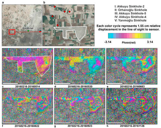 - Kim, J.W.; Lu, Z.; Degrandpre, K. Ongoing deformation of sinkholes in Wink, Texas, observed by time-series Sentinel-1A SAR interferometry (preliminary results). Remote Sens. 2016, 8, 313. [Google Scholar] [CrossRef]