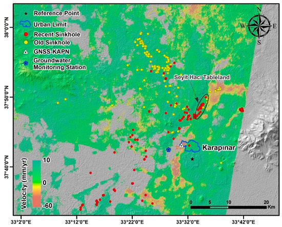 - Üstün, A.; Tuşat, E.; Yalvaç, S.; Özkan, İ.; Eren, Y.; Özdemir, A.; Bildirici, İ.Ö.; Üstüntaş, T.; Kırtıloğlu, O.S.; Mesutoğlu, M. Land subsidence in Konya Closed Basin and its spatio-temporal detection by GPS and DInSAR. Environ. Earth Sci. 2015, 73, 6691–6703. [Google Scholar] [CrossRef]