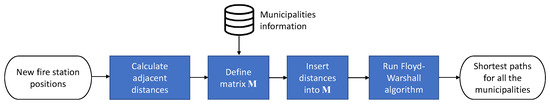 - Distances between all pairs of adjacent municipalities measured in travel time. This information was collected from publicly available online map applications. In particular, Google Maps has been used.