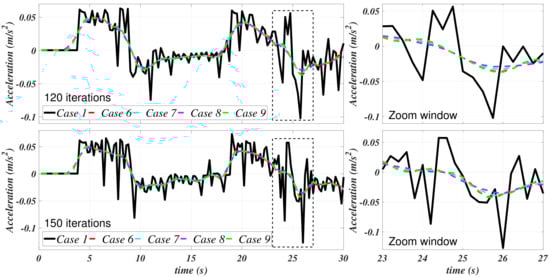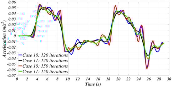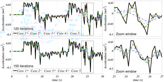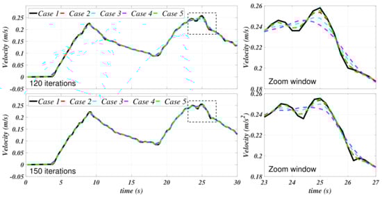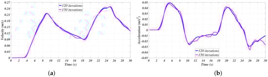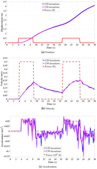 The simulation time is defined as 30 s with two different time steps of and s in order to obtain 150 and 120 data points, respectively, to have a rough approach to the time step influence.