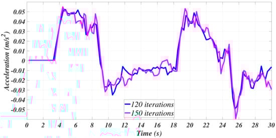 Results of the estimation of hydrodynamic parameters for the motion in with 150 iterations.