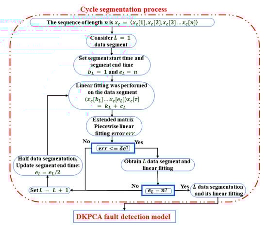 After obtaining the best segmentation data of the segment, the segmentation data are used as the input into the DKPCA fault detection model. The fault detection process is shown in Figure 4.